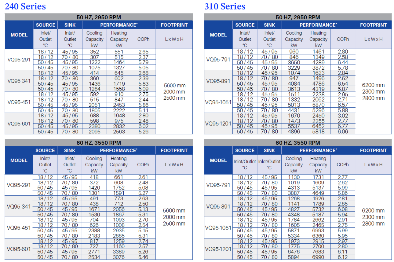 Grâce à son COP élevé et à ses impressionnantes capacités de levage, le VQ95 élimine souvent le besoin de systèmes à plusieurs étages, réduisant ainsi considérablement les coûts globaux.