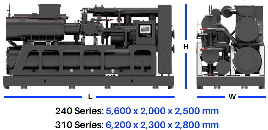 Le VQ95 est conçu pour minimiser les complexités habituelles liées à la conception, l'installation, la mise en service, l'exploitation et l'entretien des pompes à chaleur industrielles.